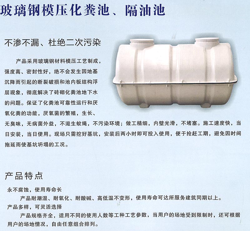 玻璃钢模压化粪池、隔油池